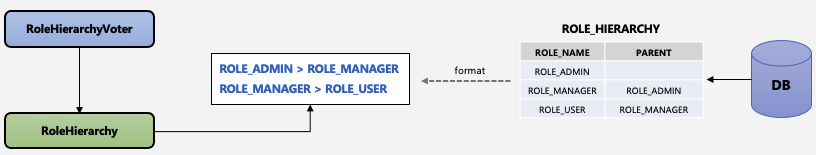 - ROLE_HIERARCHY 테이블에 저장된 정보는 정해진 format에 따라 포매팅 되어야 한다.