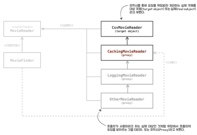 위와 같이 캐시와 관련된 기능을 따로 분리해서 CachingMovieReader 를 구현한다.