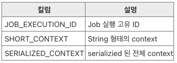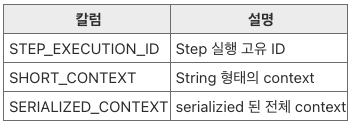 - Step에서 사용되는 모든 정보가 기록되는 Context를 저장하기 위한 테이블이다.