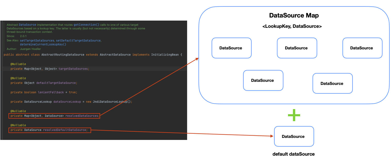 • 그리고 default dataSource도 가지고 있는데, default dataSource는 Routing 될 DataSource가 없을 때 사용된다.