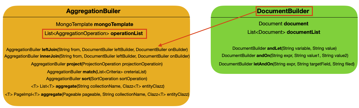 - 아래 보이는 leftJoin(), innerJoin(), project(), match(), sort()가 실행되면서, operationList에 각각의 AggregationOperation을 담는다.