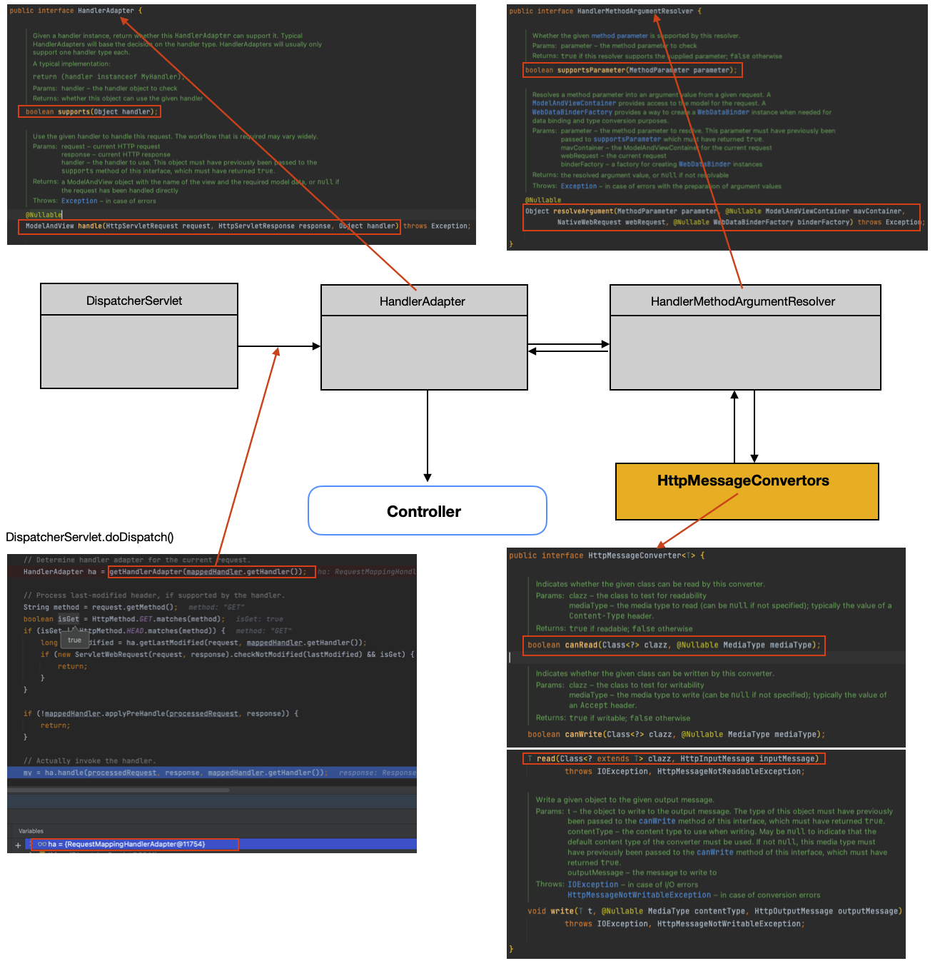 - 요약하면, @RequestMapping을 처리하기 위해 RequestMappingHandlerAdapter가 선택되고, @RequestBody를 처리하기 위해 RequestResponseBodyMethodProcessor가 선택된다.