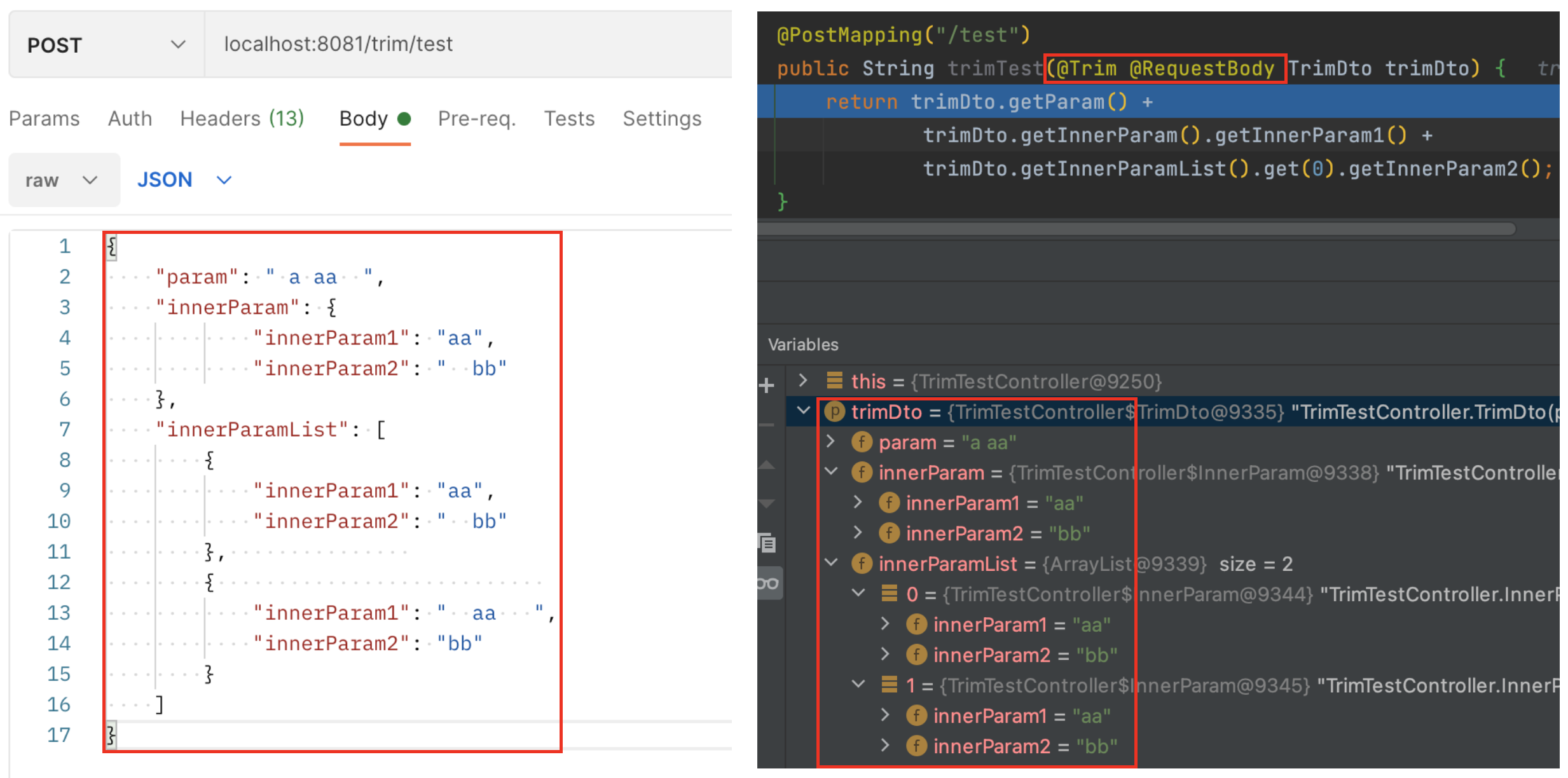 public String trimTest(@Trim @RequestBody TrimDto trimDto) {