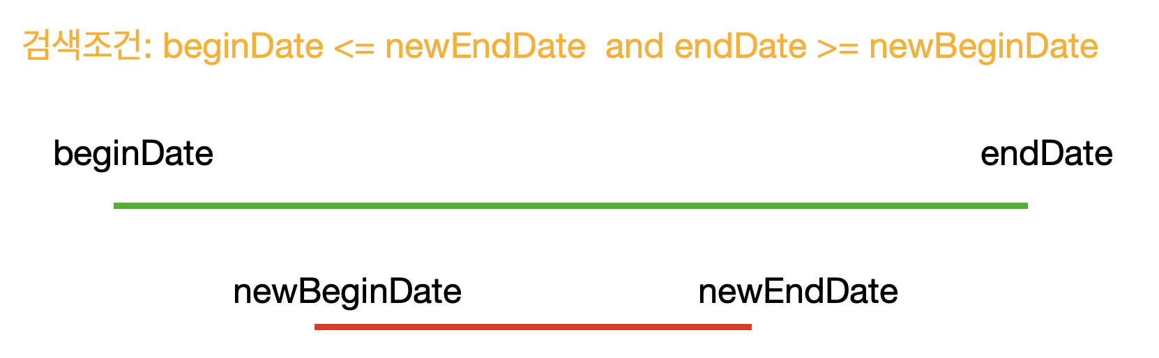 - 위 경우에 begin_date <= :newEndDate AND end_date >= :newBeginDate 로 검사할 수 있다.