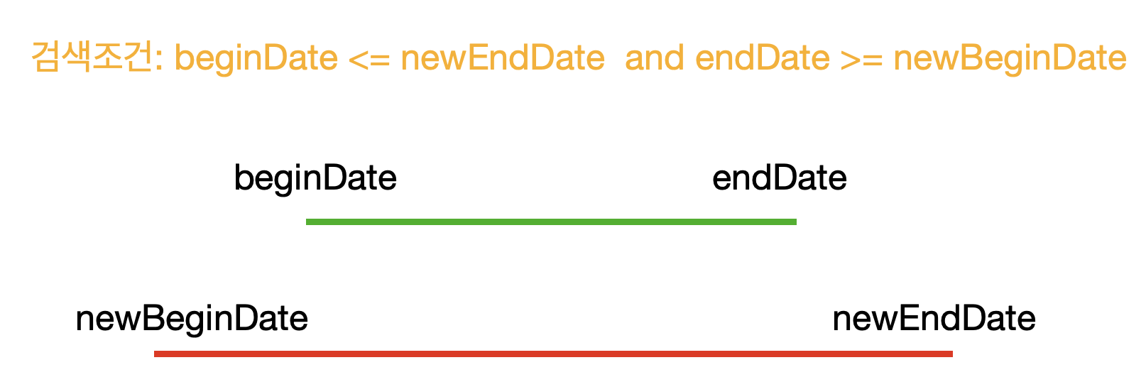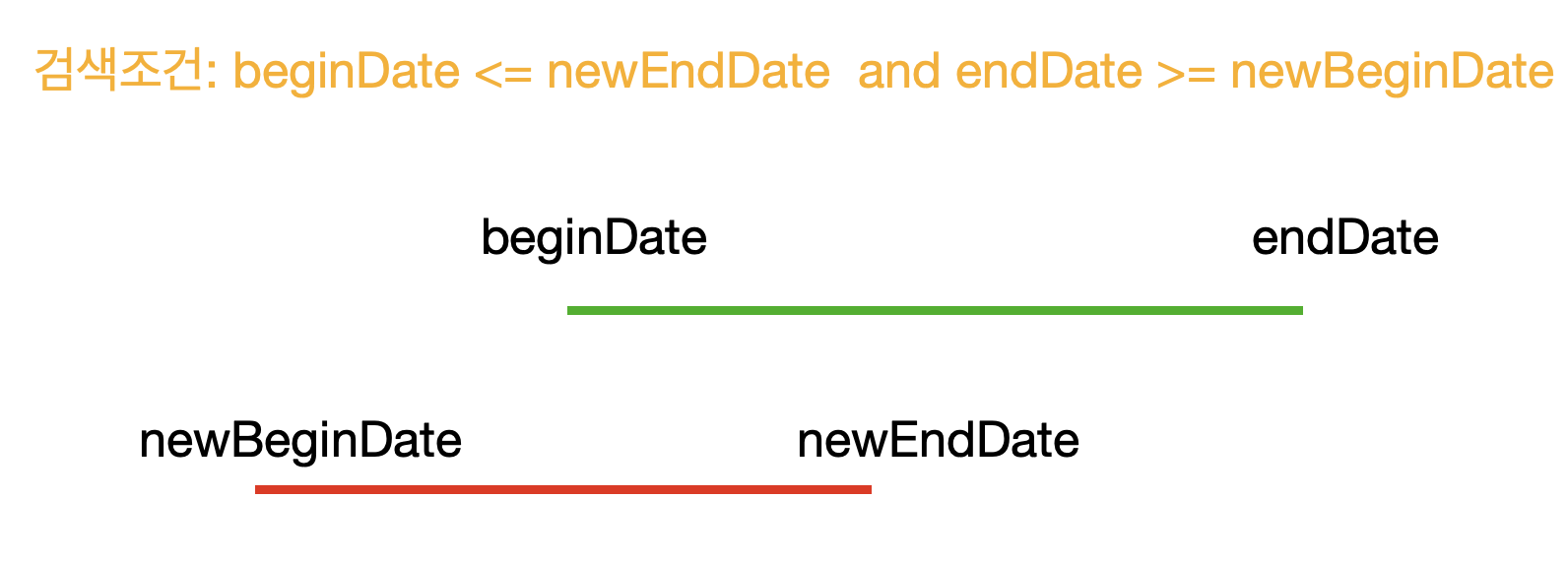 - 위 경우에 begin_date <= :newEndDate AND end_date >= :newBeginDate 로 검사할 수 있다.