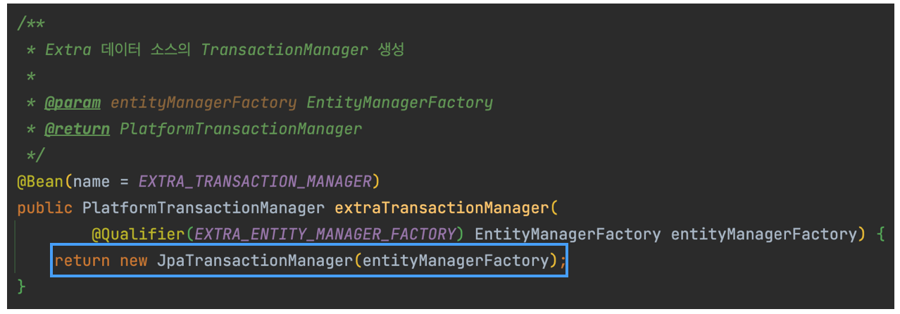 @Bean(name = EXTRA_TRANSACTION_MANAGER)