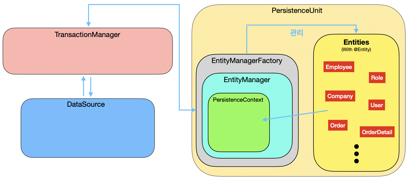 - JPA에서 영속성을 관리하기 위해서는 위와 같은 구성요소가 세팅이 되어있어야 한다.