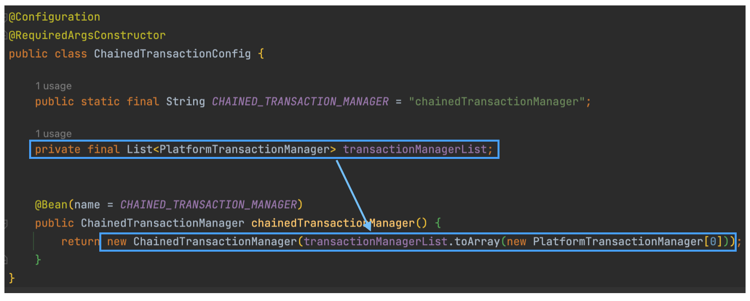 @Bean(name = CHAINED_TRANSACTION_MANAGER)