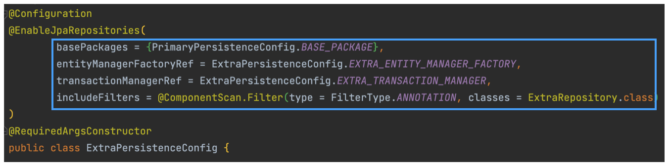 entityManagerFactoryRef = ExtraPersistenceConfig.EXTRA_ENTITY_MANAGER_FACTORY,