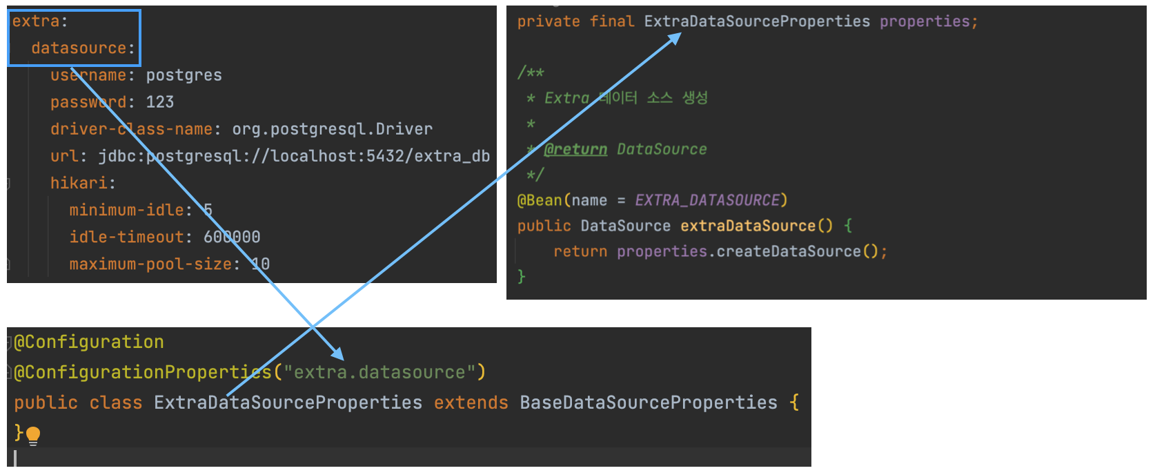 - DataSource를 구성하기 위해서 나는 @ConfigurationProperties를 사용했다. (@ConfigurationProperties에 대한 내용은 이번 글의 범위를 벗어나니 생략하도록 하자.)