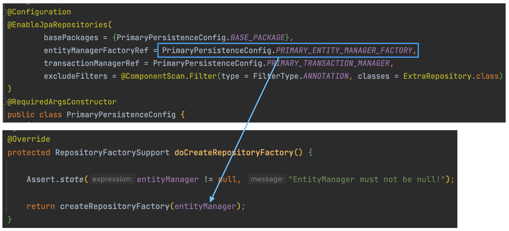 entityManagerFactoryRef = PrimaryPersistenceConfig.PRIMARY_ENTITY_MANAGER_FACTORY,