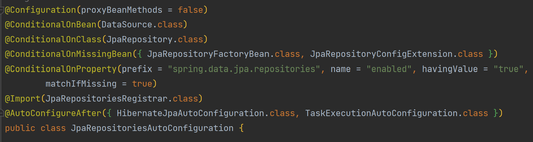 - JpaRepositoriesAutoConfiguration는 Spring Data JPA와 관련이 있는 설정 클래스이다.