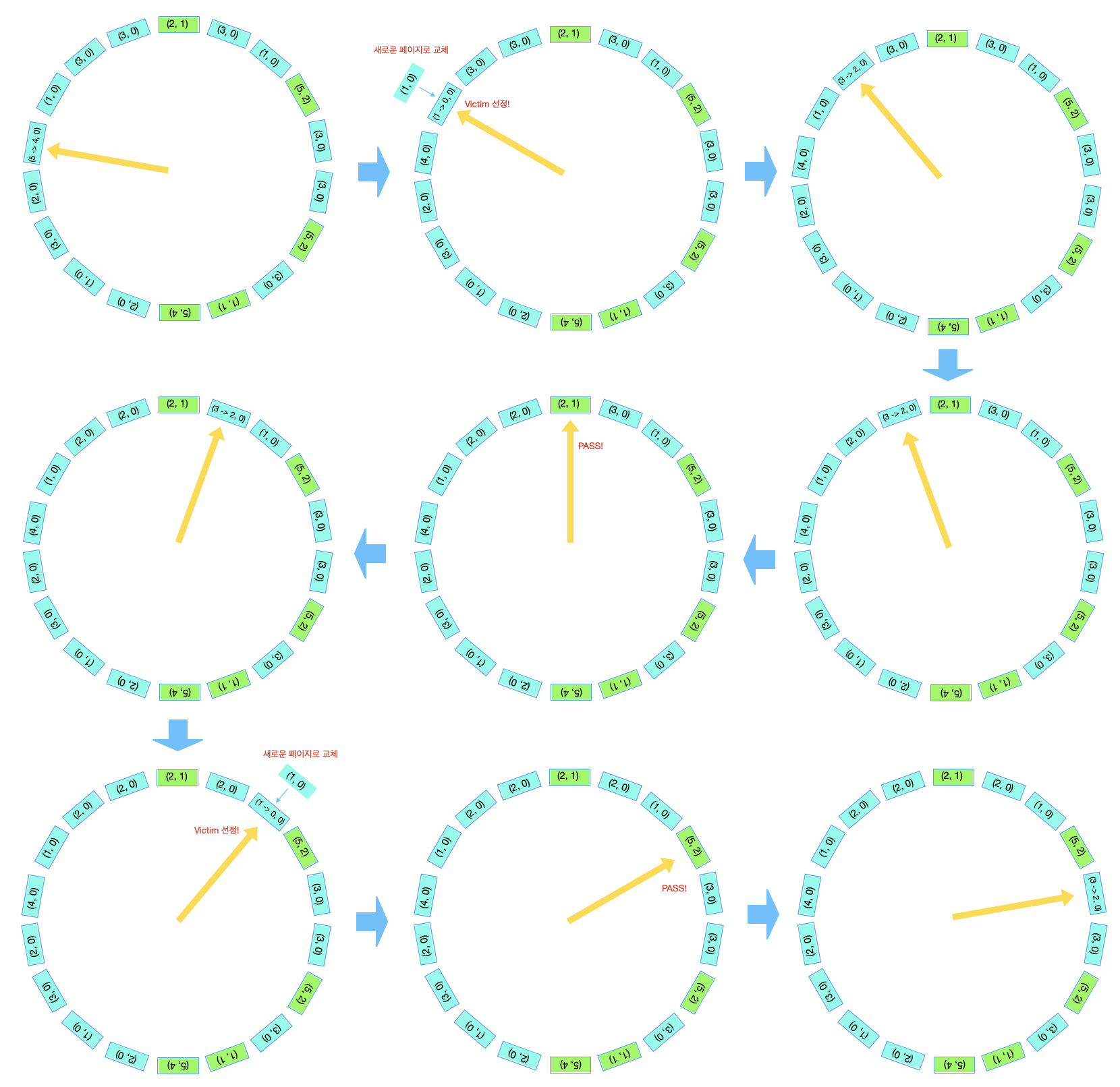 - 위와 같이 시계방향으로 버퍼를 체크하면서 교체 대상이될 버퍼를 찾는다.