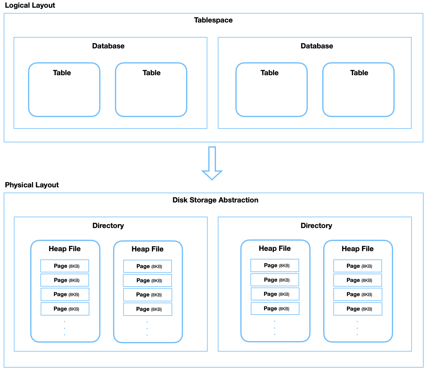 - PostgreSQL의 Logical Layout과 Physical Layout을 비교해 보자.