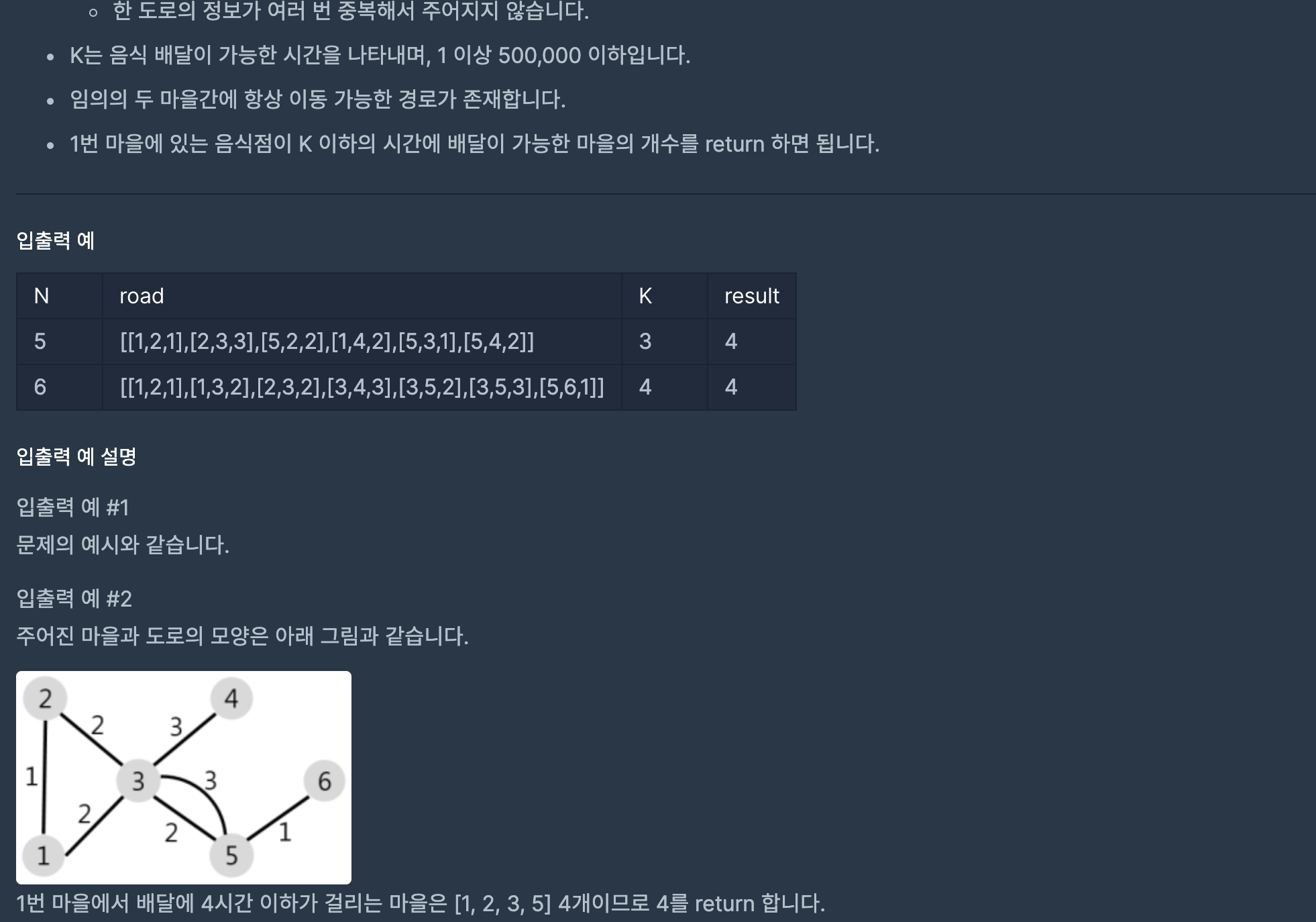 def solution(N, road, K):