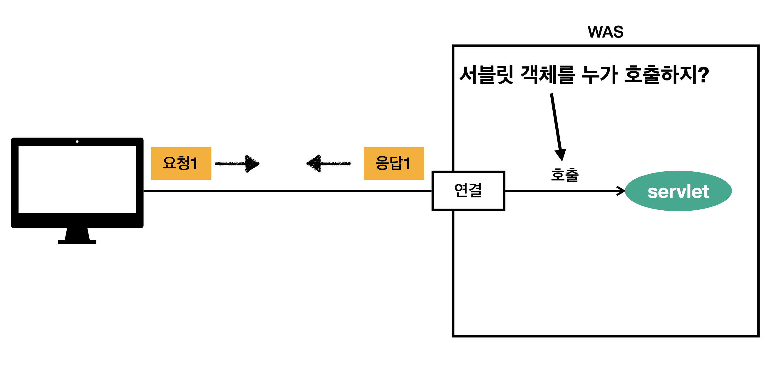 - WAS는 Request, Response 객체를 새로 만들어서 서블릿 객체 호출