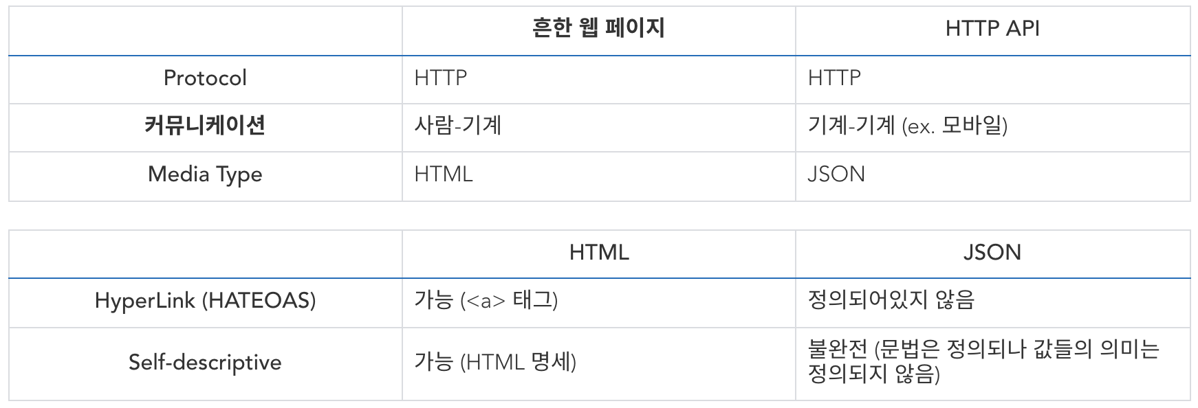 HTTP/1.1 200 OK Content-Type: application/json-patch+json [ { "op": "remove", "path": "/a/b/c" } ] - json-patch+json이라는 미디어 타입으로 정의된 메시지이기 때문에 json-patch라는 명세를 찾아가서 이해한 다음, 이 메시지를 해석을 하면 그제서야 올바르게 메시지의 의미를 이해할 수 있게 된다.