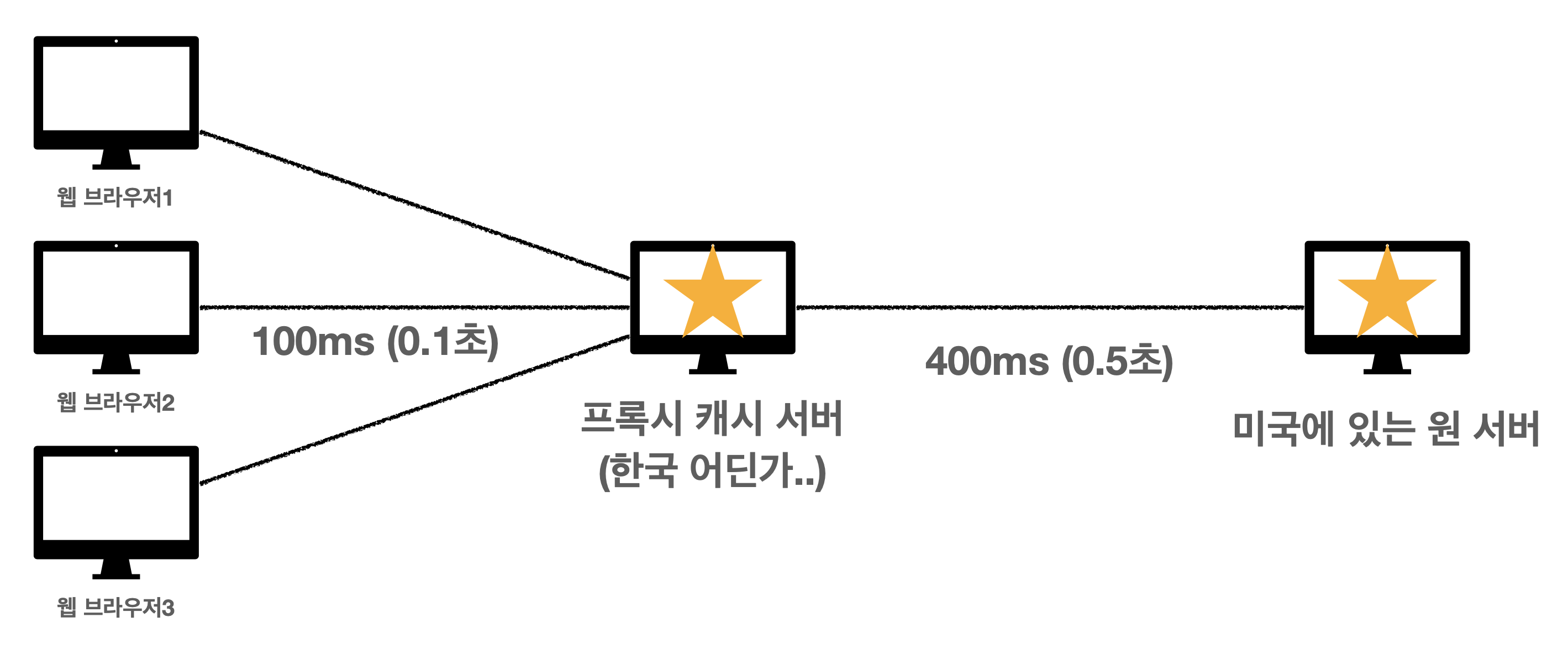 - 그렇기 때문에 오리진 서버에 요청하기전에 프록시 캐시에 들려 데이터를 받아 올 수 있다.