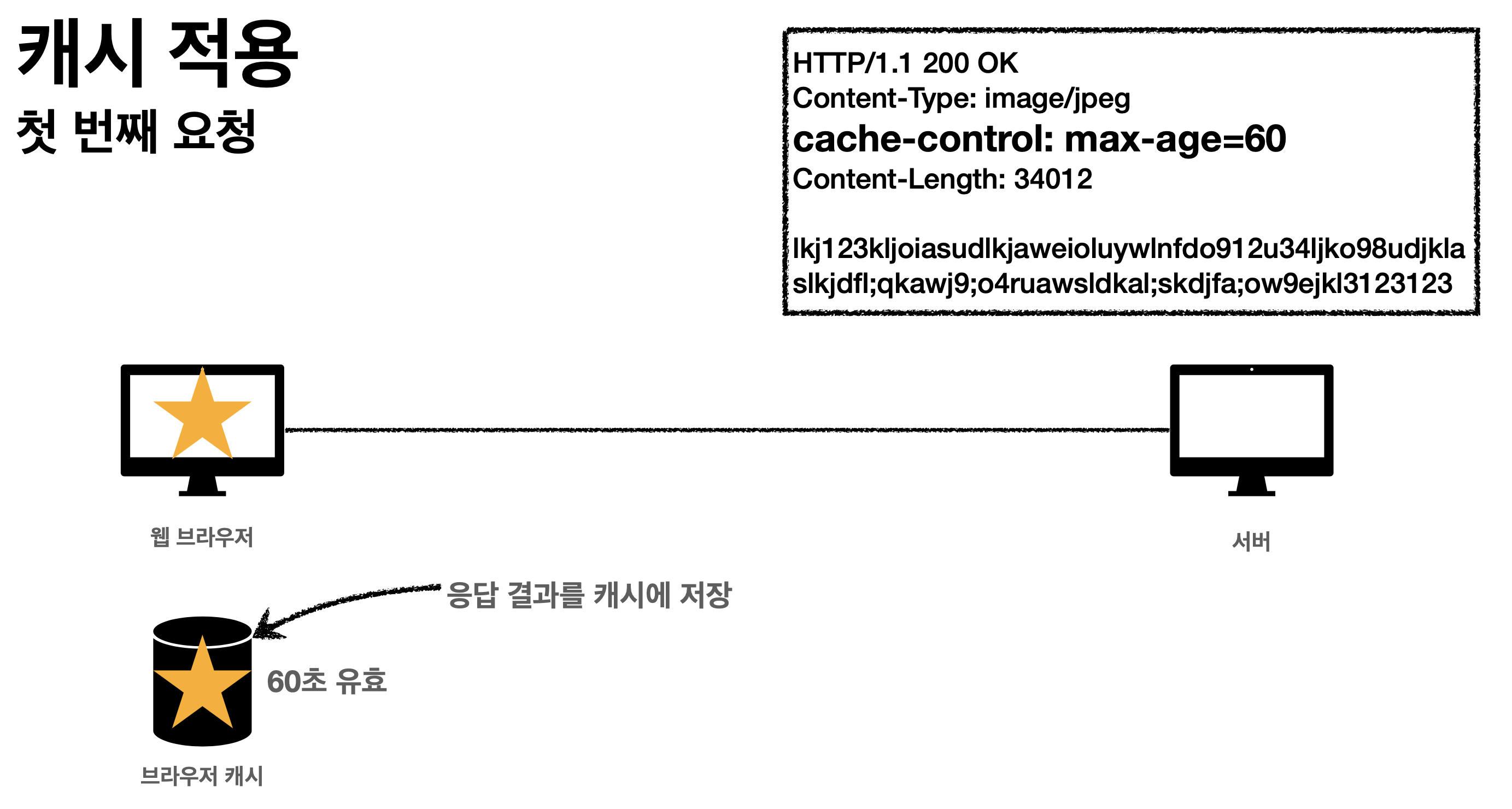 - Cache-Control: public -> 응답이 public 캐시에 저장되어도 됨