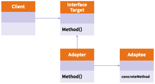 - Adapter는 실생활에서는 100v 를 220v로 변경하거나 , 그 반대로 해주는 흔히 돼지코 라고 불리는 변환기를 예로 들 수 있다. 호환성이 없는 기존 클래스의 인터페이스를 변환하여 재사용 할 수 있도록 한다.