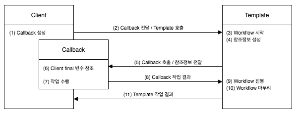 - 템플릿은 콜백이 돌려준 정보를 사용해서 작업을 마저 수행한다.