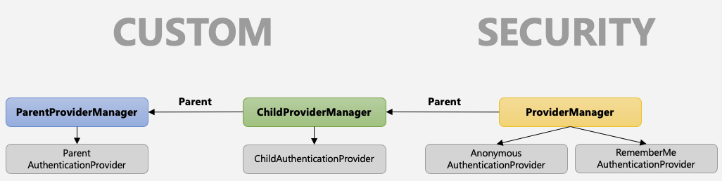 - 아래와 같이 부모 ProviderManager 를 설정하여 AuthenticationProvider 를 계속 탐색 할 수 있다.