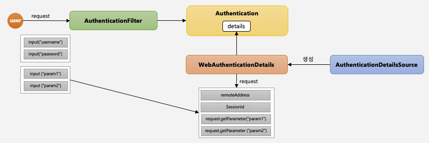 - AuthenticationDetailsSource 는 WebAuthenticationDetails 객체를 사용한다.