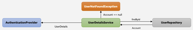 - UserDetails 타입으로 반환해야 되기 때문에 위에서 구현한 AccountContext 으로 감싸서 반환한다.