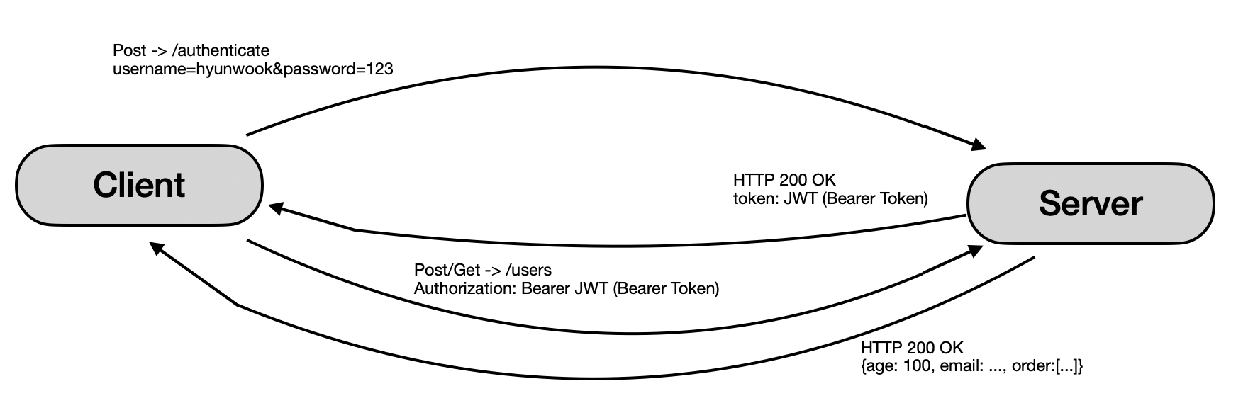 - 서버는 JWT 를 까보고 정보가 맞다면, 요청한 값을 보내준다.