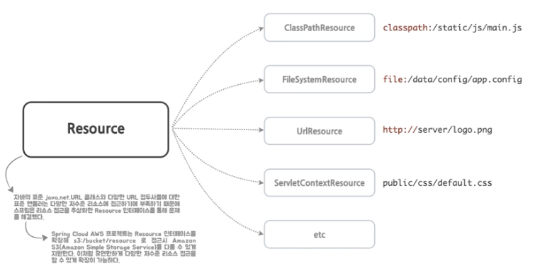 - 또한 리소스 인터페이스를 구현한 다양한 구현체를 제공한다.