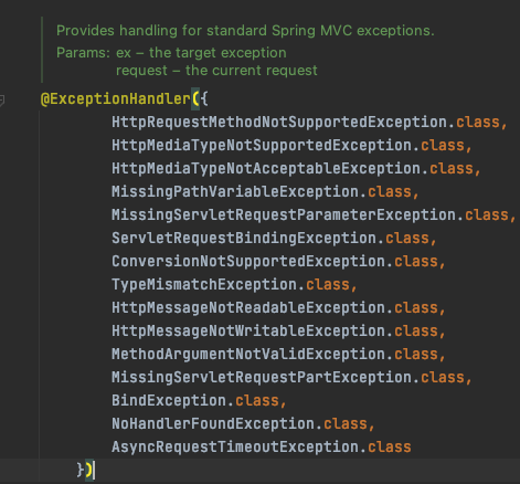 - 하지만 저렇게만 구현하면 Spring MVC 에서 내부적으로 발생하는 예외들을 상세하게 처리할 수 없다.