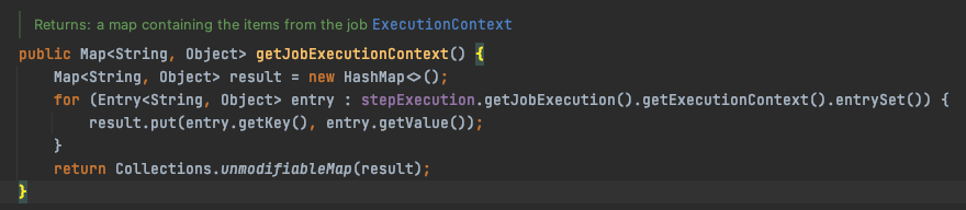 - chunkContext.getStepContext().getJobExecutionContext() 는 Job 의 ExecutionContext 이다.