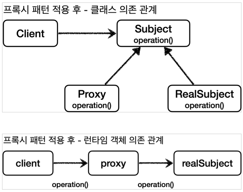 - 프록시 패턴과 데코레이터 패턴은 거의 비슷한 것을 확인할 수 있다.