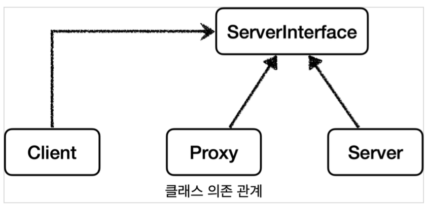 - Client는 Server에게 요청을 한 것인지, Proxy에게 요청을 한 것인지 몰라야 한다. -> 서버객체를 프록시로 변경해도 클라이언트의 코드는 변하지 않아야 한다.