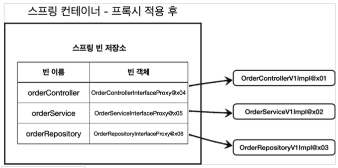 - OrderRepositoryV1Impl(실제 구현체)는 빈으로 등록되지 않지만, 프록시에 포함 되어 있기 때문에 프록시를 통해서 호출할 수 있다.