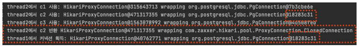 log.info("thread2에서 커넥션 사용: {}", c1);