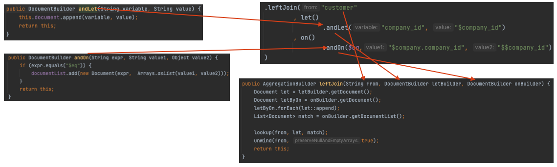 - leftJoin() 메소드를 보면 내부적으로 lookup(), unwind() 메소드를 가지고 있다.
