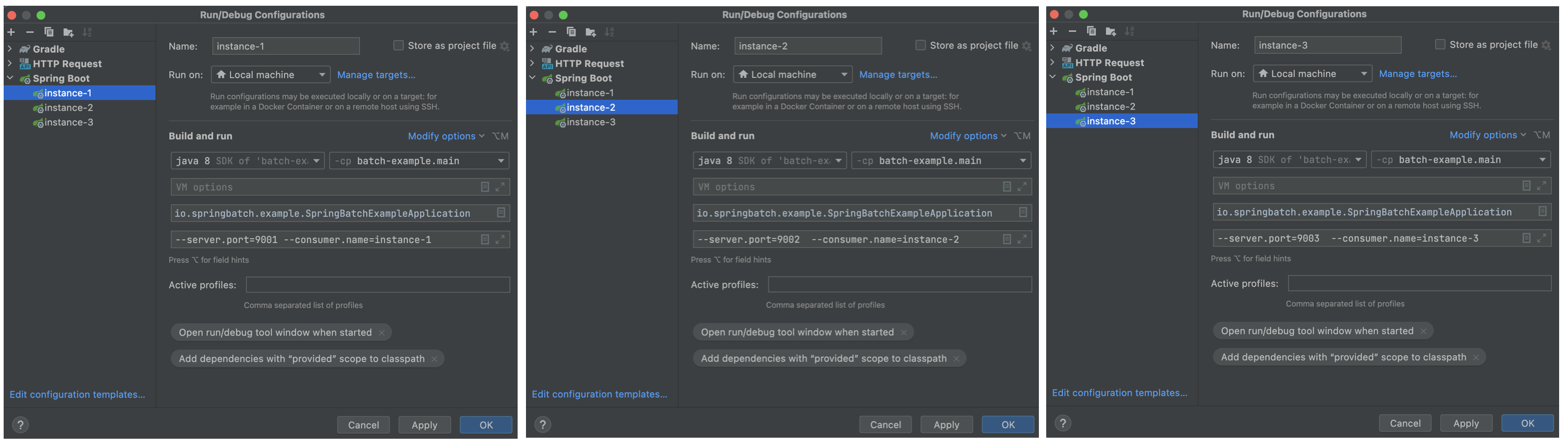 - 로컬에서는 저렇게 instance-1, instance-2, instance-3 3개의 애플리케이션을 구동시켜 두면 된다.