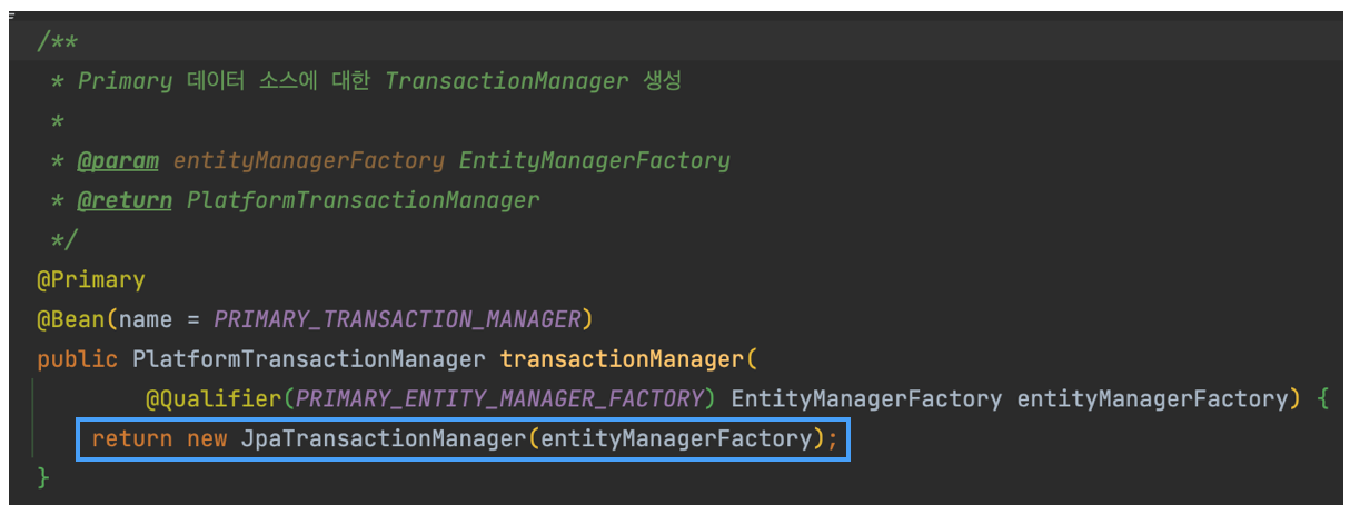 * Primary 데이터 소스에 대한 TransactionManager 생성