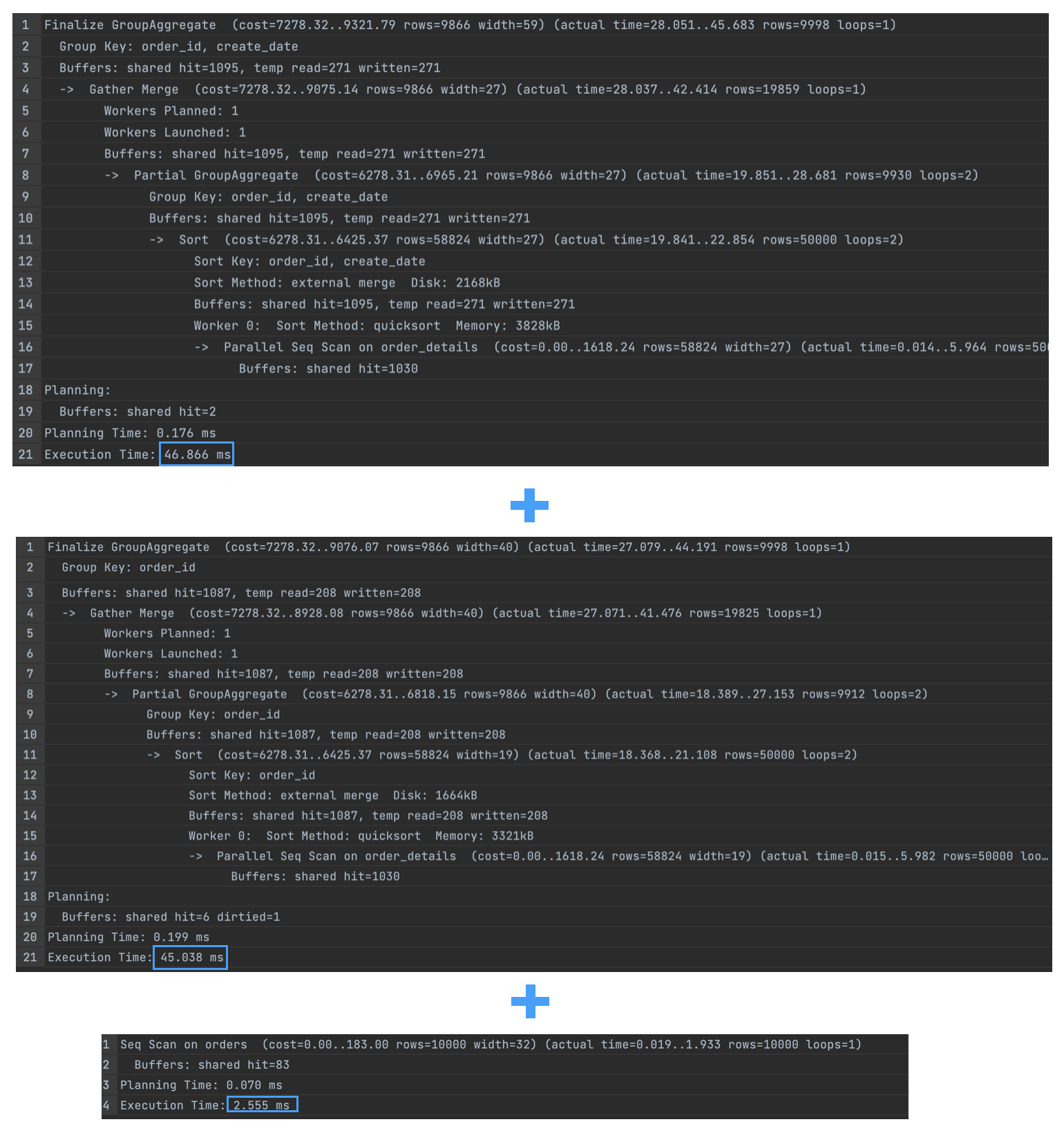 - 쿼리를 3개로 나눴을 경우, 쿼리가 간단해지기 때문에 인덱스 사용을 유도하기 좋다는 생각이 들었다.