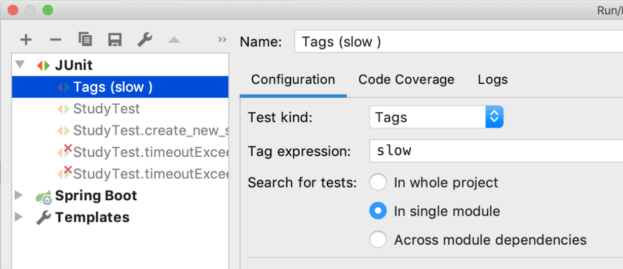 - 인텔리J에서 특정 태그로 테스트 필터링 하는 방법이다.